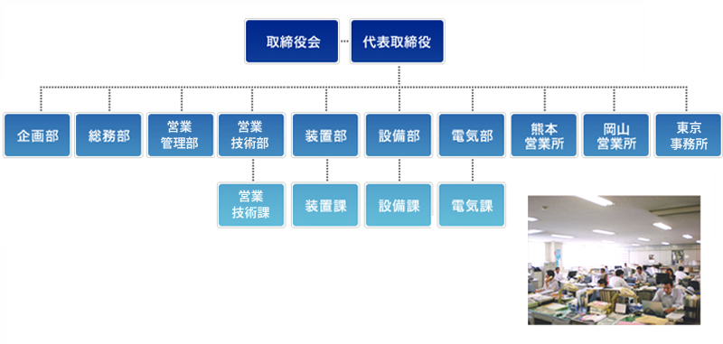 | 事業内容 | 産業設備の設計、施工 工場付帯設備の設計、施工 電気計装設備の設計、施工 各種機器・工事の設計、製作、施工 工場建屋・土木の設計、施工 学校・体育館などの公共工事 環境装置の設計、施工 各種プラント・設備のメンテナンス 環境・省エネビジネス |